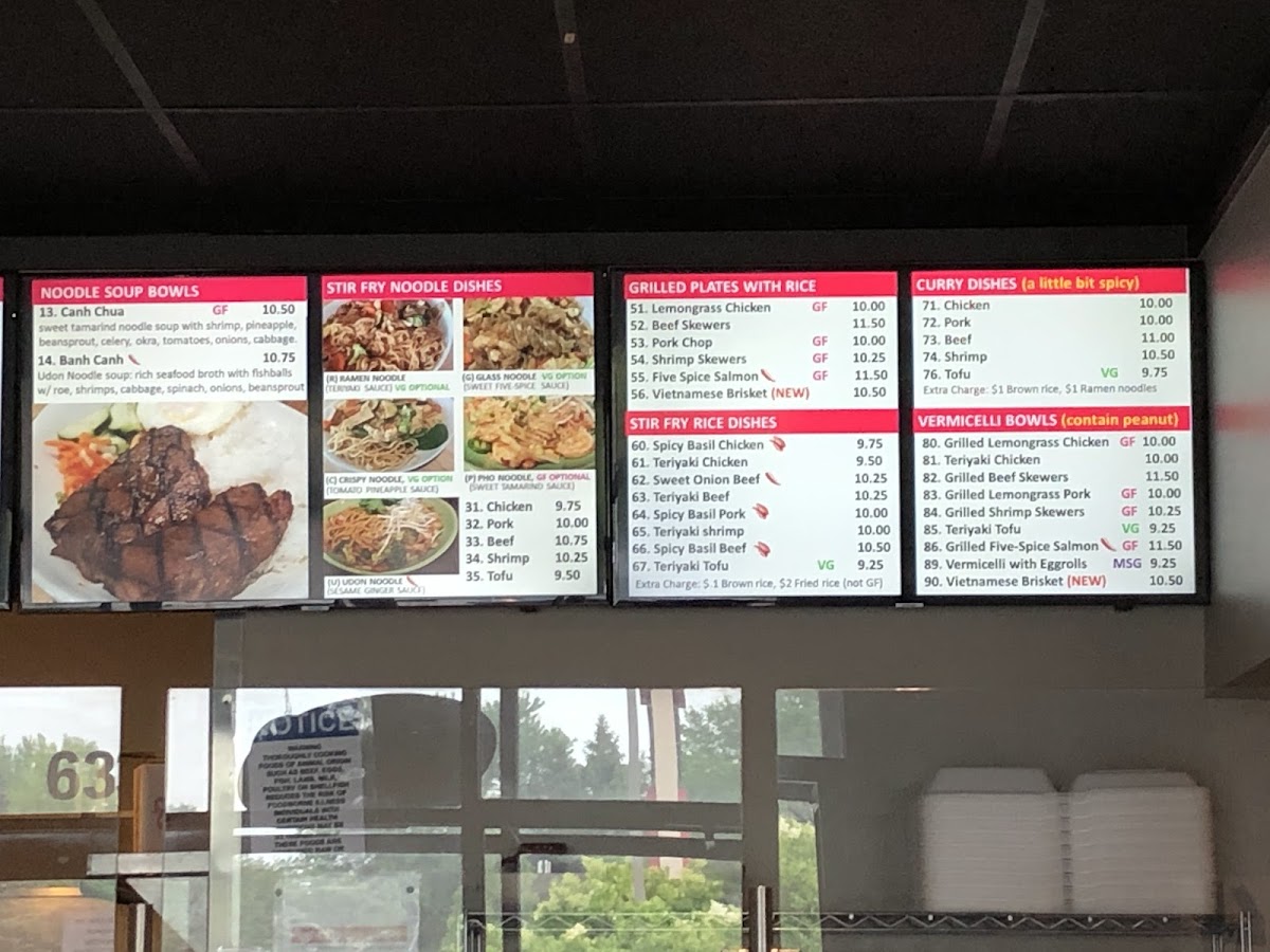 (CHICKEN) Grilled chicken, shiitake mushroom, bok choy, green onions, carrots, and ramen noodles in a Vietnamese herb chicken broth.